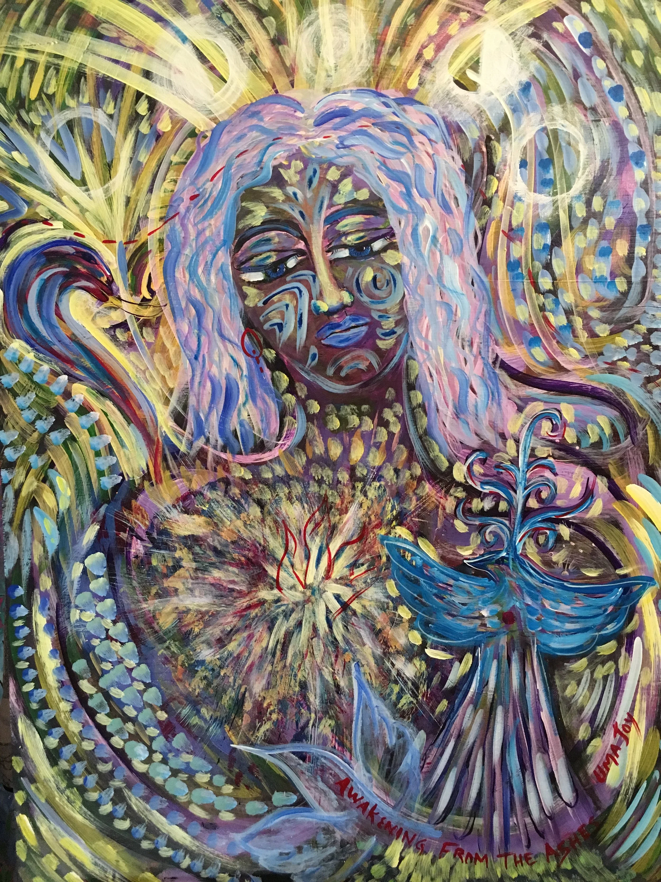 Often wounds and traumas (physical and emotional) are held deep in the cellular memory. When we put our attention on something – it already begins to change. With a paintbrush in hand, symbolism and information arises – the light shines on it and healing can happen.
